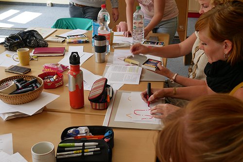 Gerne gebe ich mein Wissen weiter und ermutige andere, ihr Denken mit dem Stift sichtbar zu machen. Workshops können wir individuell nach Ihrem Bedarf planen. Bitte sprechen Sie mich an!