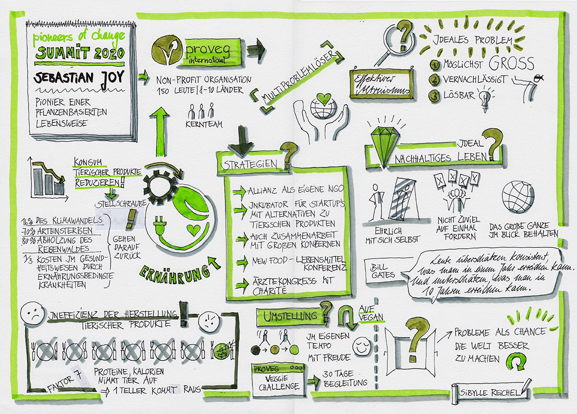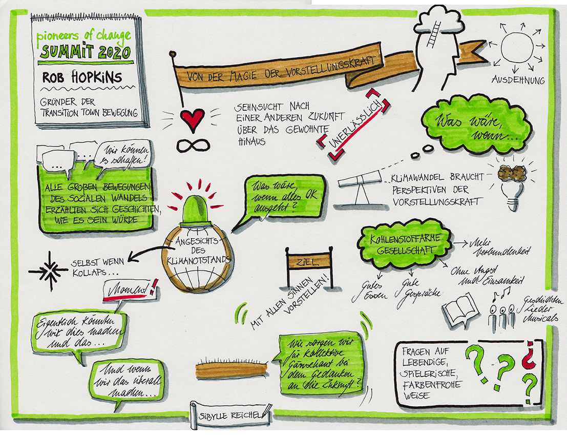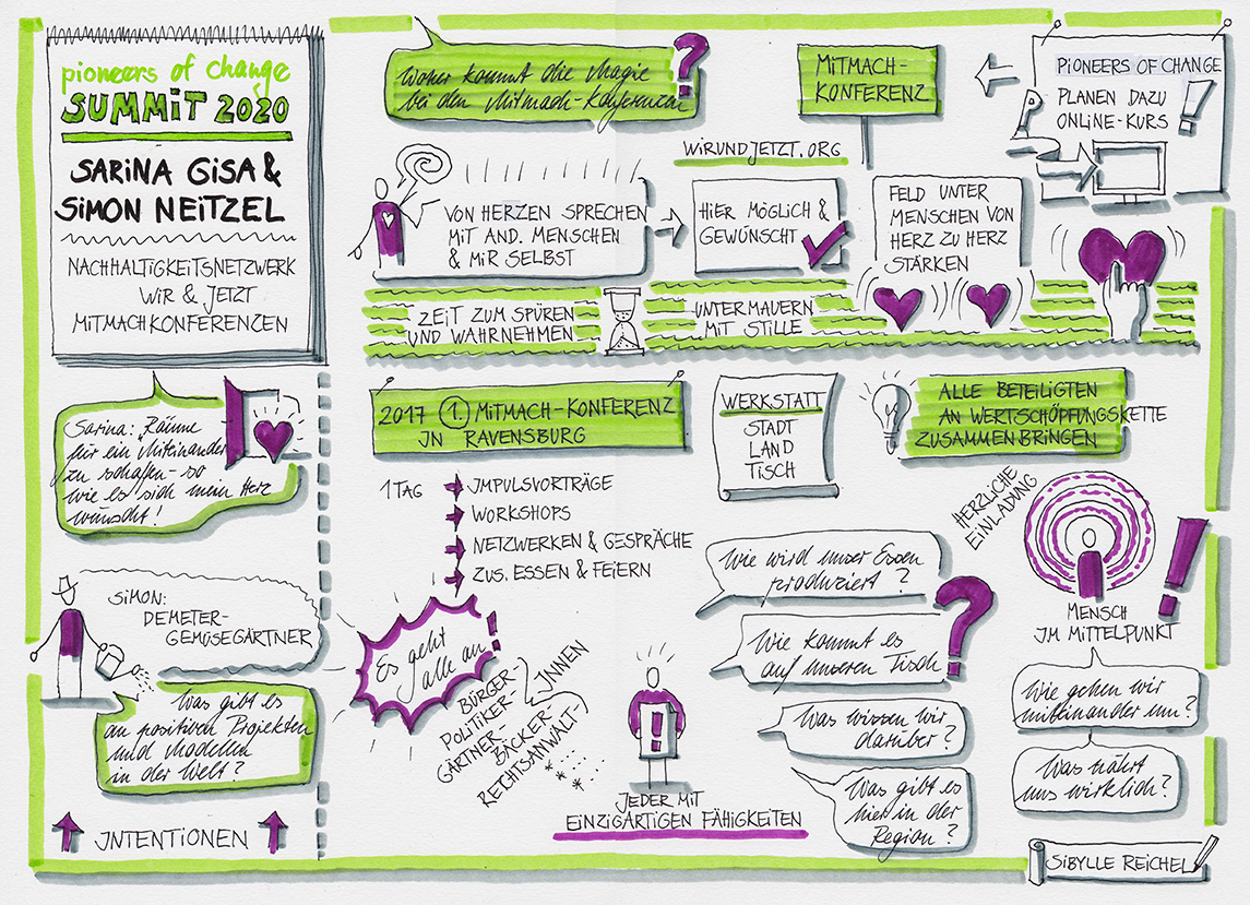 Im März 2020 sah ich es als meinen Beitrag, einige Interviews des Pioneers-of-change - Summits zur Klimakrise und zum Wandel in der Welt mitzuzeichnen. Hier unten können Sie sich diese Graphic Recordings anschauen.