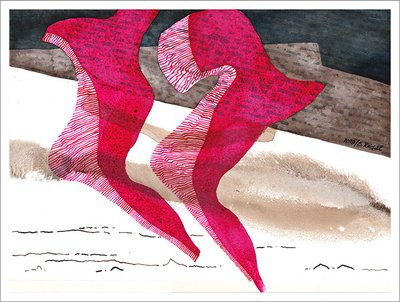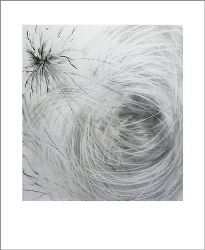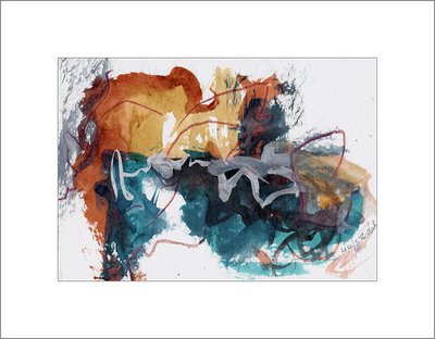 Hier möchte ich Ihnen sechs kleinformatige Arbeiten vorstellen, die ebenso in der Serie der "Poesie der Absichtslosigkeit" entstanden sind, wie schon das Bild im Oktober. Die Zeichnungen sind von mir als Einladung an Sie gedacht, sich im oftmals hektischen Alltag für einen Moment ganz dem Augenblick hinzugeben. -