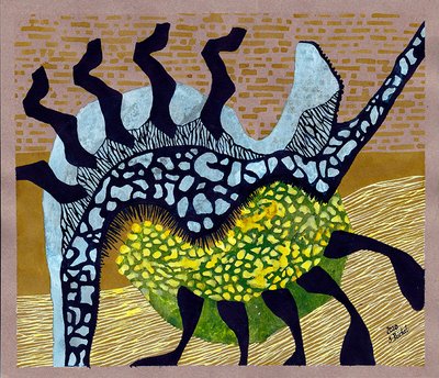 Den Anfang der Reihe zur Kunst der visuellen Wahrnehmung macht dieses Bild, welches ich mit Rauch gezeichnet habe. Dafür wird das Papier befeuchtet und eine Flamme darüber geführt. Diese Technik ist sehr meditativ. Um so mehr überraschte mich die große Figur, die wiederum eine kleine in den Händen hält. Welche von den beiden der "Kleine Gott" ist, überlasse ich Ihnen...
