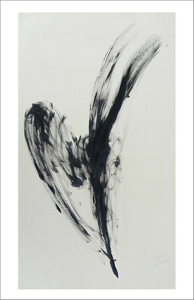 Jede Bewegung des Pinsels zeigt das Wesen der dargestellten Form, weniger deren Umriss. Jeder Schwung ist eine Form. Und jedes Absetzen zwischendurch, ebenso jedes Zögern, würde unerwünschte Spuren hinterlassen.
