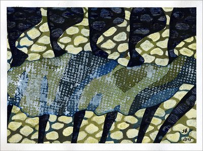 Anfangs haderte ich dort im Niederen Fläming mit der Monotonie der Brandenburger Wälder, bin ich doch von der kleinteiligen Landschaft hier in Thüringen reichlich verwöhnt. Doch mehr und mehr begann ich den Waldrand direkt vor meinem Atelier zu genießen: fror gerne bei offenem Fenster, um die Vogelstimmen einzulassen und träumte mit dem Blick in die Bäume vor mich hin... Immer öfter ging ich im Wald spazieren und nahm ein um das andere Detail wahr. Zweige, Moose und Erde wanderten in mein Atelier.