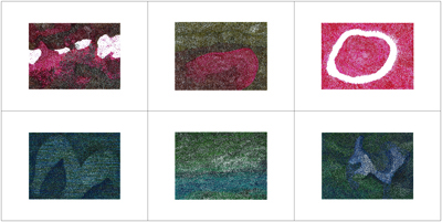 Wie klingen Blau und Schwarz zusammen? Würden sich "innere" Bilder in der Struktur ergeben, wenn sich monochrome Punktebenen überlagern?