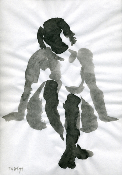 Den zahlreichen Nuancen der Bewegung habe ich 2005 nachgespürt und sie mit Tusche und Spachtel gezeichnet. Den Spachtel führte ich ganz verschieden über das Papier: fließend, stockend, rhythmisch, verträumt, zögernd - eben je nachdem, was ich für eine Bewegung im Sinn hatte. Meine Hand wurde zusammen mit dem Kopf zur Reisenden, bis ich ganz in diesem Projekt aufging.