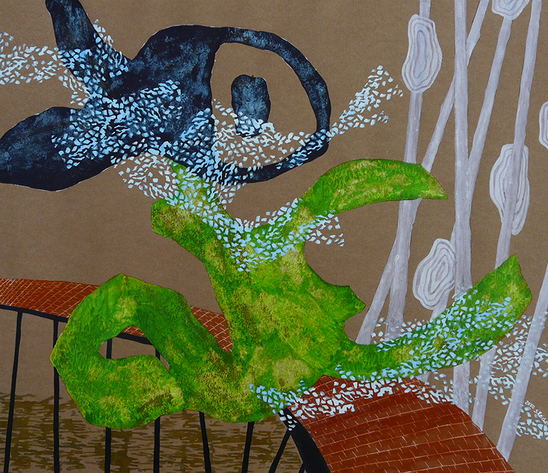 Einzelne Bewegungsmuster aus dieser Reihe habe ich - wie hier in diesem Bild - herausgegriffen und mich gefragt: Was nehmen wir eigentlich noch wahr, wenn wir so in Bewegung sind? Worauf richten wir unsere Aufmerksamkeit? Im Bild wird es durch die Collage sichtbar. Es sind einzelne Ausschnitte, Details und kann niemals alles sein. Jede und jeder von uns wählt nach eigenen Prinzipien aus, was persönlich von Bedeutung ist. Auch auf unserem Lebensweg.