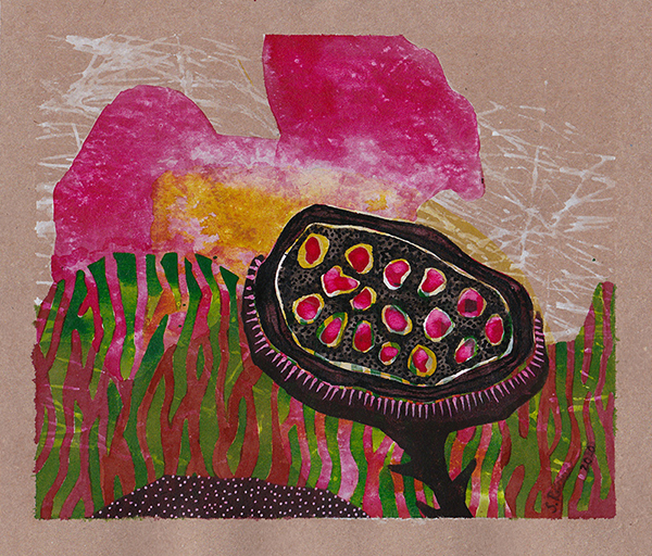 Im diesjährigen Sommerbild verbinden sich für mich Erinnerungen an wunderbar haptische Erfahrungen und visuelle Wahrnehmungen auf der Oberfläche einer keramischen Schale, Assoziationen zu einer warmherzigen Freundin mit einer großen kommunikativen Kompetenz und mein allgemeines Lebensgefühl Anfang des Jahres.