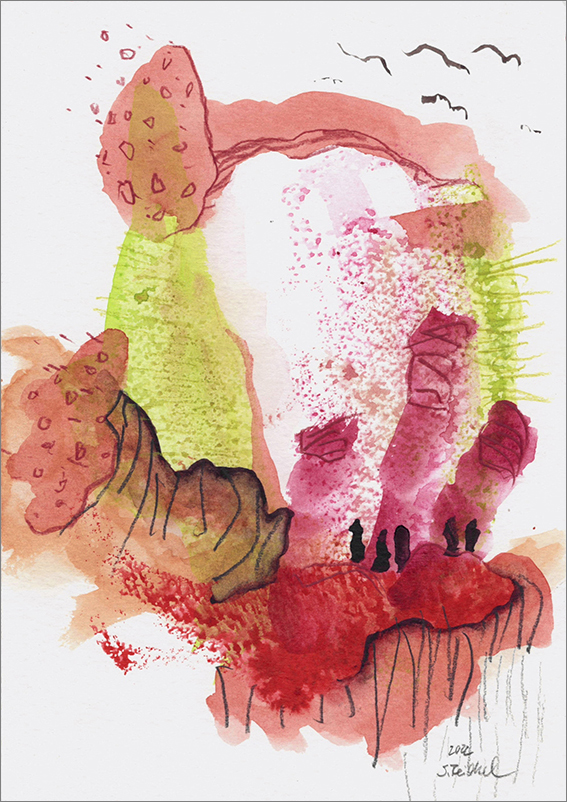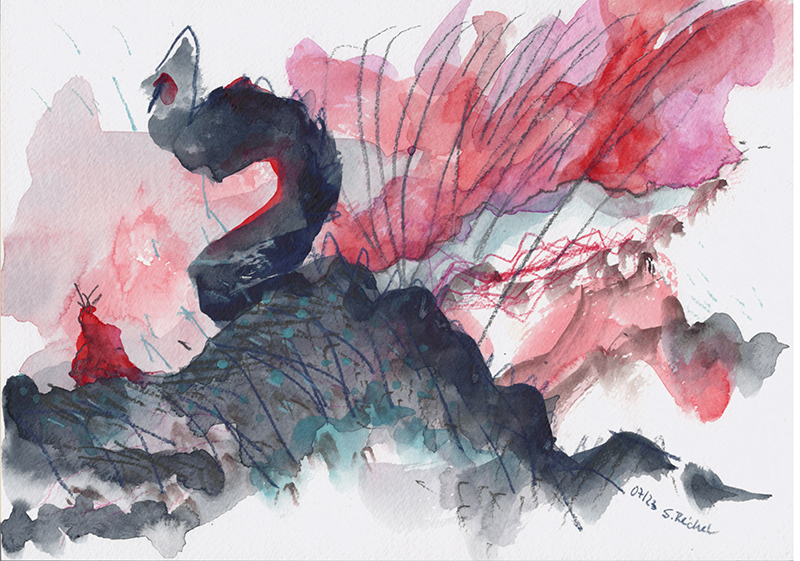 Dieses Bild zeigt solch einen Aufbruch, den ich während eines Zwiegespräches beobachten konnte. Ein körperliches Unbehagen löste sich bei einer der Beteiligten und vollkommen neue Gedanken wurden für sie frei.