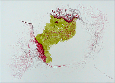 Dieses Bild hat im Jahr 2010 eine neue Phase in meiner Arbeit als Bildende Künstlerin eingeleitet, in der ich mich seitdem mehr der Zeichnung (von Bildern von Gesprächen und wie wir miteinander reden) zuwende. Die Arbeit entstand ganz spielerisch, ohne Absicht und erschien mir wie ein Traumbild. Für mich war dieser Traum eine Reise zu neuen Arbeitsfeldern (denen der Kommunikation und der visuellen Wahrnehmung davon) und vielen interessanten menschlichen Begegnungen.