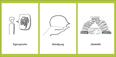 Faltobjekt mit Zeichnungen und Textausschnitten: >> Würde - Was uns stark macht - als Einzelne und als Gesellschaft <<