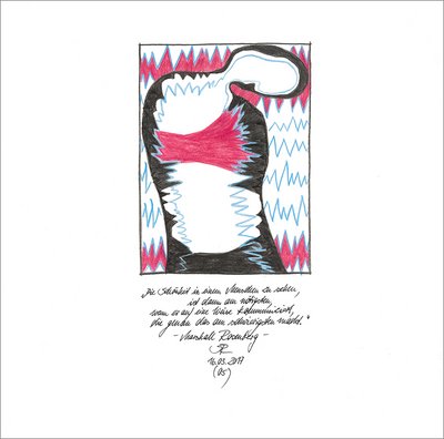 Für mich stellte das Nachvollziehen eine Herausforderung dar und dennoch spürte ich, dass in diesem Satz viel Wahres und Hilfreiches für mich steckt. So begann ich dazu unmittelbar zu zeichnen: Ich lese den Text, lasse ihn in mich sinken, greife mir die Stifte und beginne zu zeichnen. Dies ist für mich inzwischen ein Weg der Aneignung. Sie sehen hier die 5. Zeichnung dieser Serie.