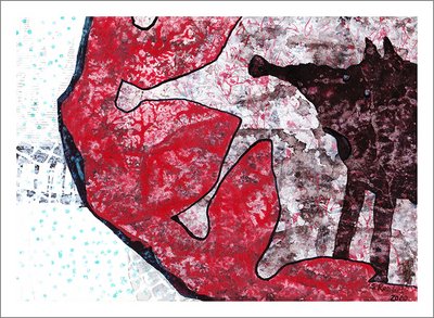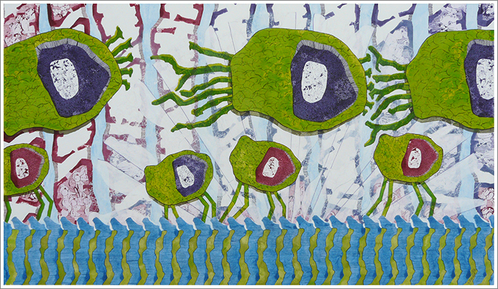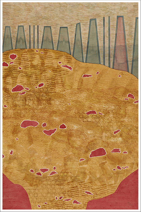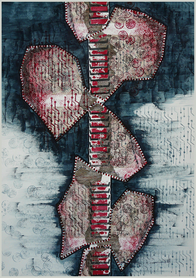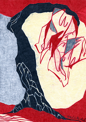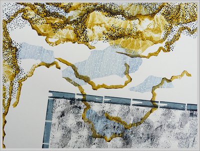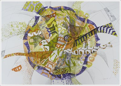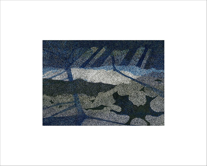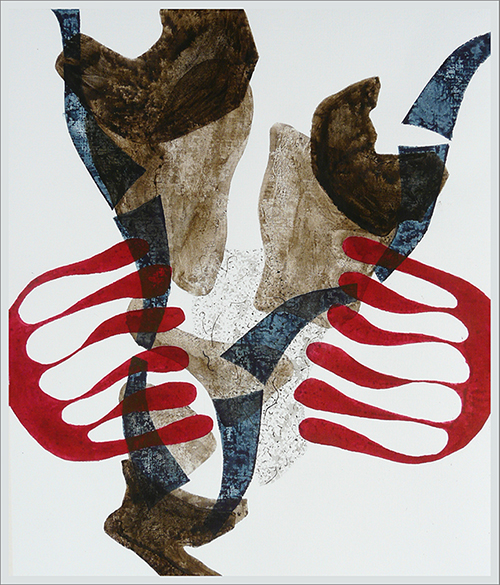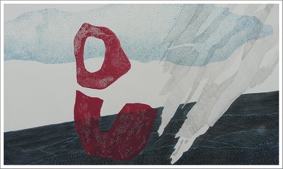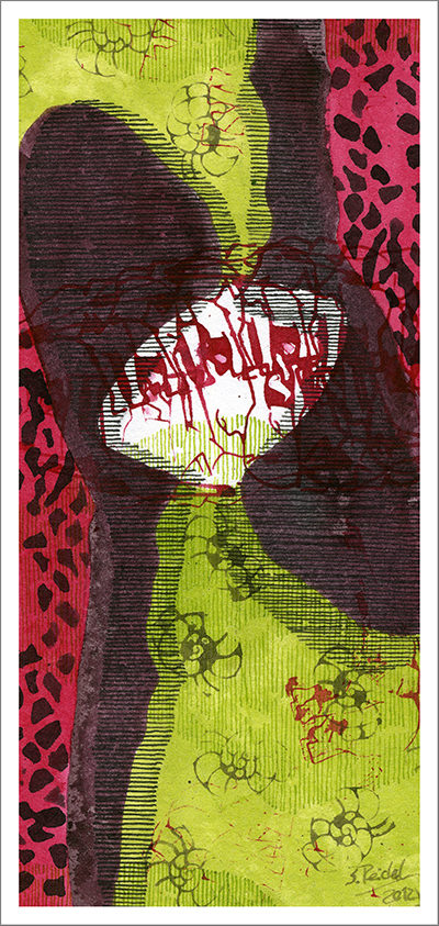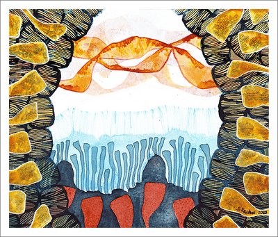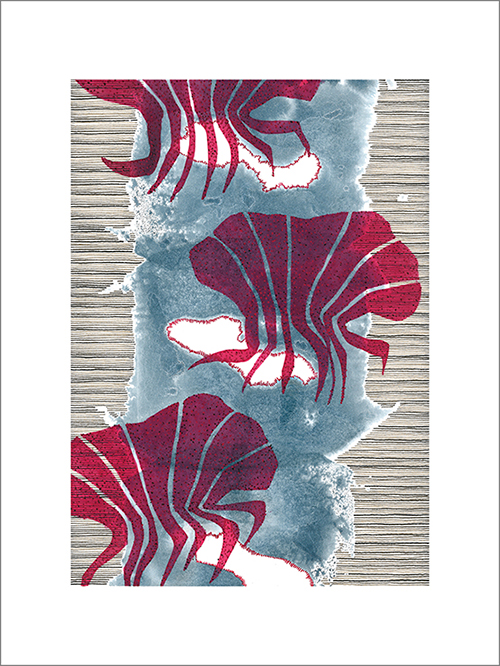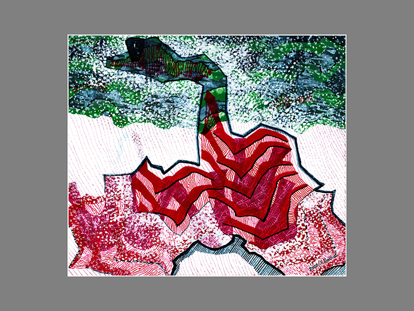 Dies führte bei mir im Atelier, einige Zeit später, zu einer Überlagerung all dieser Eindrücke in der vorliegenden Linografie.