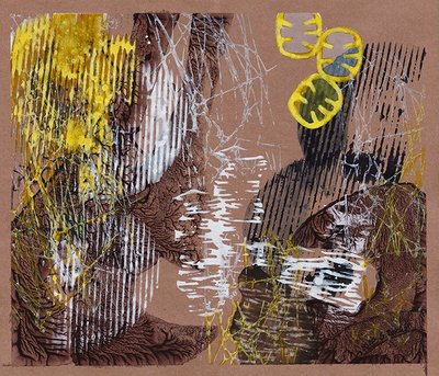 Nach den ersten beiden Schichten war wenig Bewegung in der Zeichnung, also verdichtete ich die Fläche weiter und entdeckte plötzlich am unteren Bildrand die jetzt noch sichtbaren Figuren.