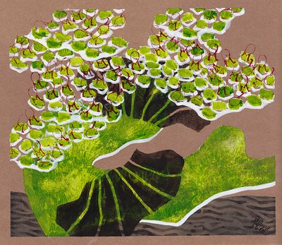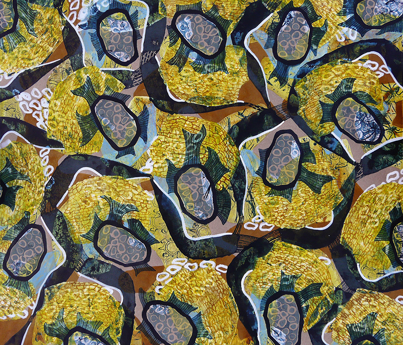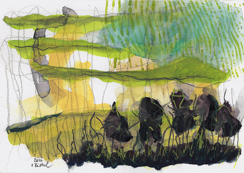 Im diesjährigen Sommerbild verbinden sich für mich Erinnerungen an wunderbar haptische Erfahrungen und visuelle Wahrnehmungen auf der Oberfläche einer keramischen Schale, Assoziationen zu einer warmherzigen Freundin mit einer großen kommunikativen Kompetenz und mein allgemeines Lebensgefühl Anfang des Jahres.