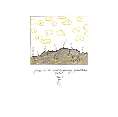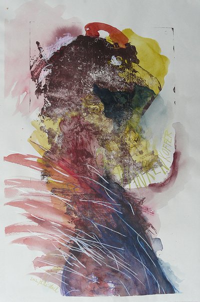 Das Blatt "Großes Nichtwissen" ist eines der Blätter, die mir aus heutiger Sicht nicht "fertig" erscheinen. Ich möchte es zu einem symbolischen Materialwert weggeben und dazu einladen, das Blatt zu verwandeln: weiter darauf malen, zeichnen, bekleben, verformen, zerschneiden, verbrennen... Dabei habe ich einen Sockelbeitrag von 77€ genannt. Nach oben ist der mögliche Beitrag offen. Falls Sie zu einem geringeren Beitrag an dem Blatt interessiert sind, lassen Sie uns gerne darüber reden.