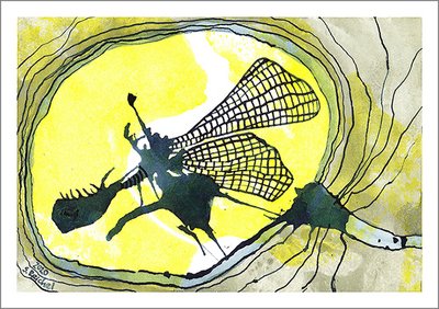 Den zahlreichen Nuancen der Bewegung habe ich 2005 nachgespürt und sie mit Tusche und Spachtel gezeichnet. Den Spachtel führte ich ganz verschieden über das Papier: fließend, stockend, rhythmisch, verträumt, zögernd - eben je nachdem, was ich für eine Bewegung im Sinn hatte. Meine Hand wurde zusammen mit dem Kopf zur Reisenden, bis ich ganz in diesem Projekt aufging.