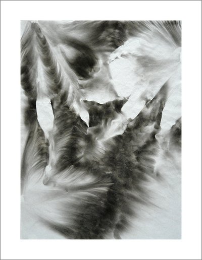 Den Anfang der Reihe zur Kunst der visuellen Wahrnehmung macht dieses Bild, welches ich mit Rauch gezeichnet habe. Dafür wird das Papier befeuchtet und eine Flamme darüber geführt. Diese Technik ist sehr meditativ. Um so mehr überraschte mich die große Figur, die wiederum eine kleine in den Händen hält. Welche von den beiden der "Kleine Gott" ist, überlasse ich Ihnen...