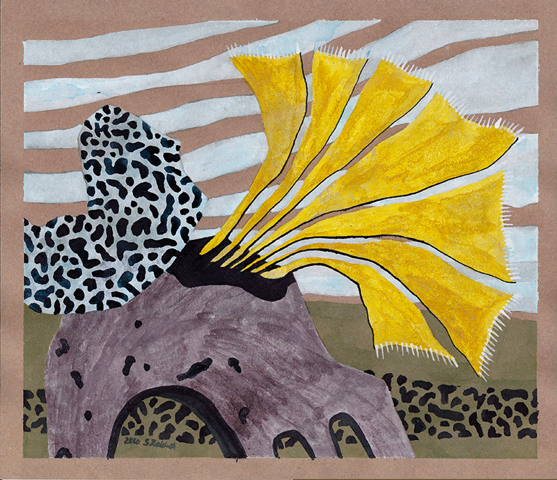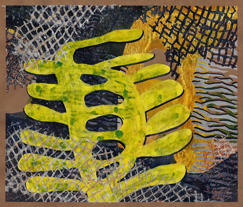 Im Oktober beschäftigte mich bildnerisch die Durchlässigkeit von Grenzen: Welchen Sinn und welche Konsequenzen haben sie? Wie verhalten wir uns an Grenzen? Wie kann es gelingen, in einer Erstarrung wieder beweglich zu werden?