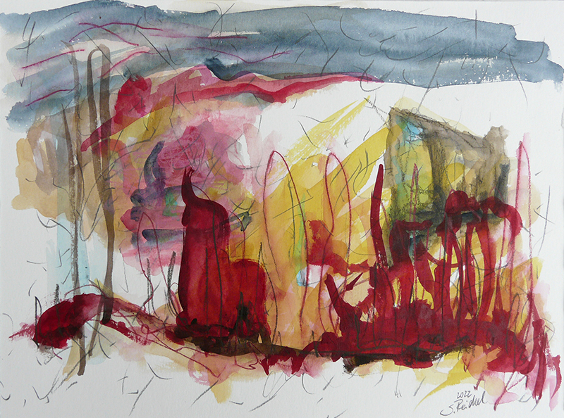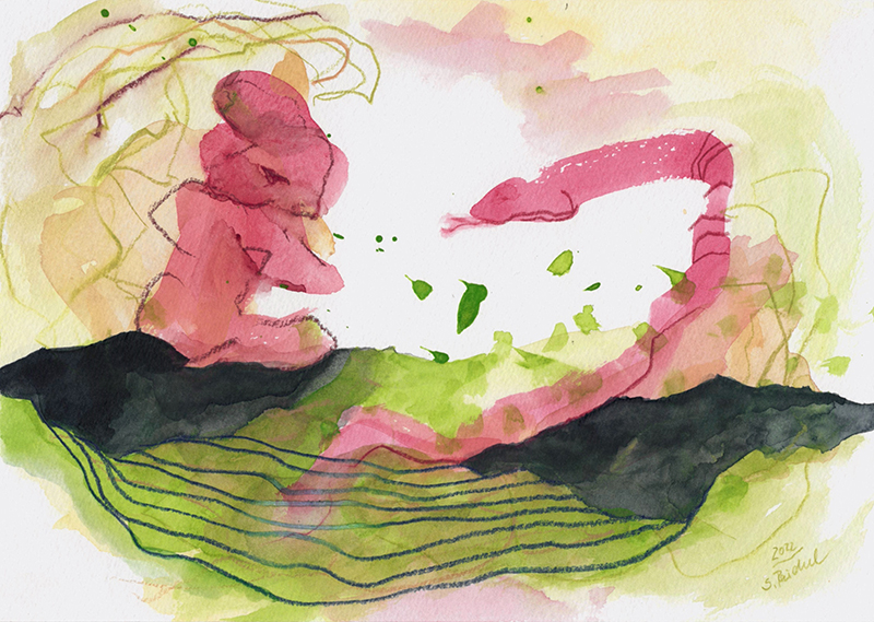 Dieses Bild zeigt solch einen Aufbruch, den ich während eines Zwiegespräches beobachten konnte. Ein körperliches Unbehagen löste sich bei einer der Beteiligten und vollkommen neue Gedanken wurden für sie frei.