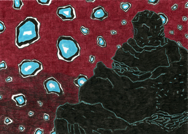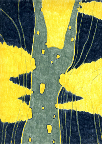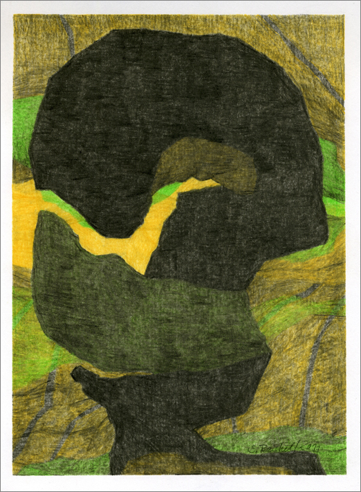 Mich interessierten beim Zeichnen damals besonders Aspekte der Komposition: Welche Gebilde erhalten durch ihr Aussehen und ihre Lage Bedeutung? Einige Formen kommen im Bildraum nach vorn, andere bleiben im Hintergrund.